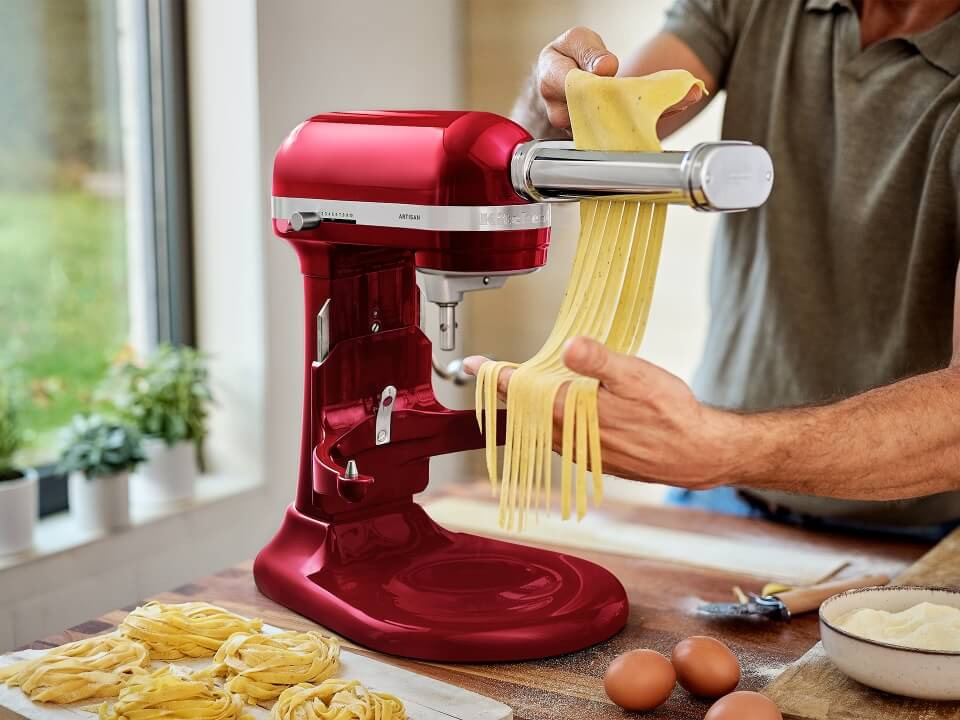You'll be tooled up with the included mixing bowl, wire whisk, dough hook and beater (the paddle attachment). Some models also come with our flex edge beater which reduces the need to scrape the bowl. Or the pastry beater, which takes the hassle out of perfectly flaky pastry. These can all easily be changed with a simple twist-lock motion and allow you to do everything from batter to meringue.